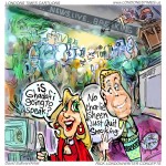 On an offnote, Dave has created artwork for Londons Times Cartoons and he always does it with a style, grace and deadline that would floor the most veteran editor. He is great fun with which to work and his cartoons always get a great laugh. Here is some of his more recent Londons Times Cartoons.