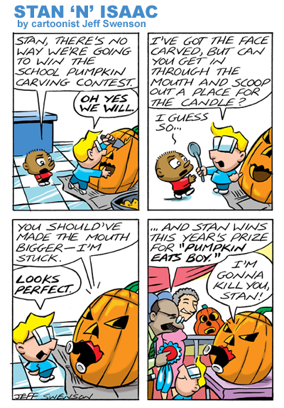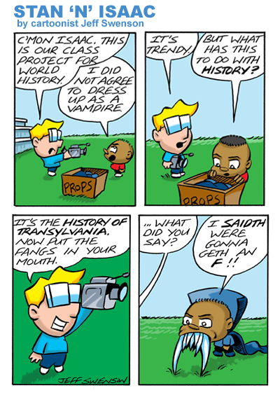 Jeff Swenson is a cartoonist working in the Pacific Northwest. He has been online and offbeat since 1999 producing a multitude of comic strip projects and even some questionable animation. Feel free to visit with him at his home site SwensonFunnies.com The cartoon is titled "Stan 'N' Isaac". Please click Jeff's thumbnails to enlarge comics. Thanks!![]()