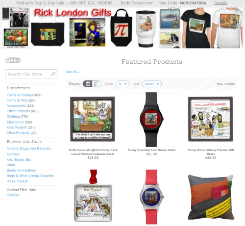 | Below are links to Londons Times Cartoon Stores and Other Rick London Gift Shops Publishing, Licensing and Custom Cartoons (and any other questions regarding LTCartoons.com Great Southern Writers Syndicate info@GSWSyndicate.com |